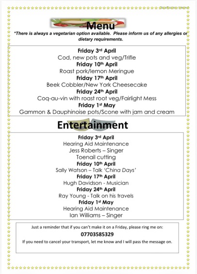 APRIL MENUS AND                        ENTERTAINMENT